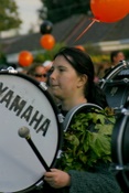 band and families and friends follow them down the street. At the end of the
