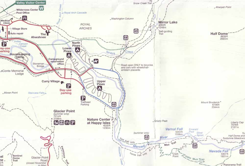Interesting Yosemite and Half Dome links Yosemite National Park Service Yosemite Map - this link has 2 pdf maps, the official park map and Yosemite Valley Map.